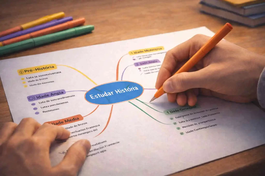 Portanto, se você quer parar de sofrer com brancos na hora da prova, este guia é para você. A seguir, vamos te mostrar, passo a passo, como organizar suas ideias e aprender muito mais rápido. Então, prepare suas canetas coloridas ou seu aplicativo favorito e vamos nessa!